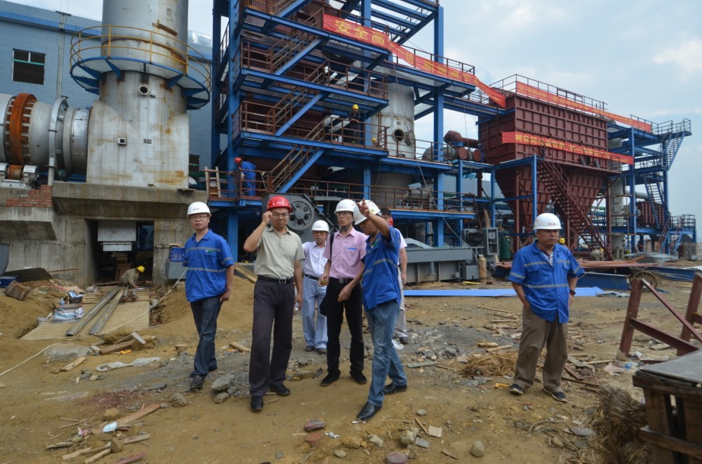 攀枝花恒德公司危廢處置項(xiàng)目工程建設(shè)總指揮、副總經(jīng)理袁杰在建設(shè)工地向劉東風(fēng)總經(jīng)理匯報(bào)工程施工及設(shè)備安裝概況。
