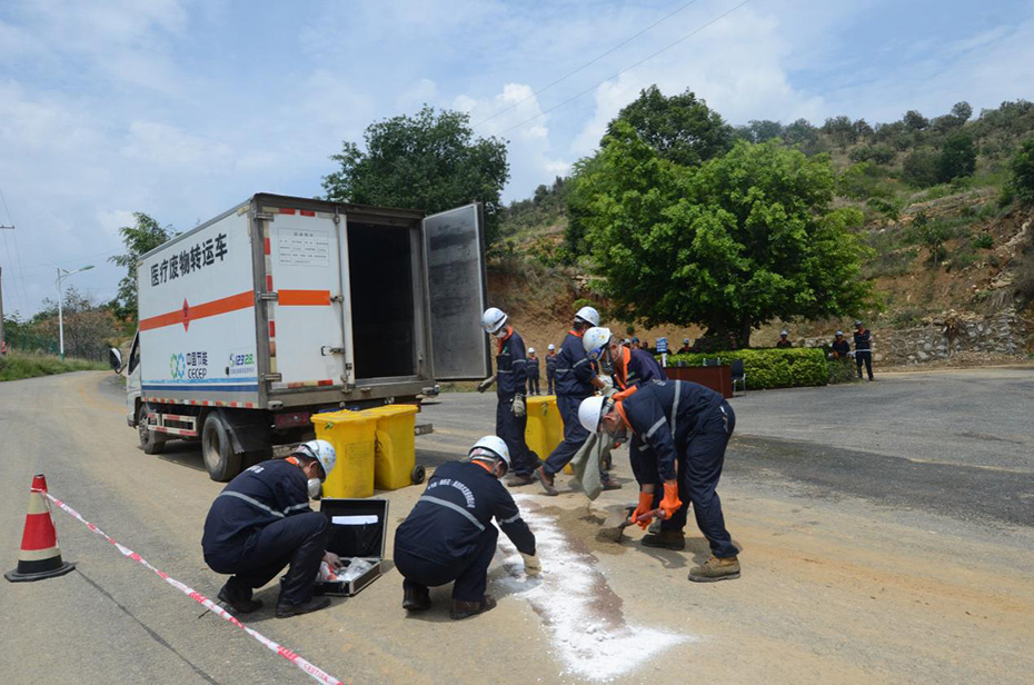 為進一步加強醫(yī)療廢物收運過程中道路運輸安全管理工作,有效應對道路運輸突發(fā)事件,更好保障職工和公眾的環(huán)境安全。2017年7月4日,中節(jié)能(攀枝花)清潔技術(shù)發(fā)展有限公司(以下簡稱攀枝花公司)在生產(chǎn)廠區(qū)組織開展道路運輸安全應急演練。市交通運輸管理部門領(lǐng)導現(xiàn)場觀摩。