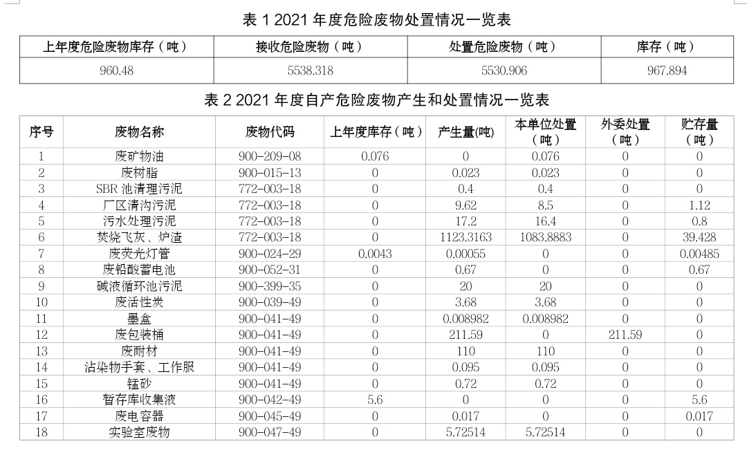 攀枝花市危險廢物處置中心項目是國務(wù)院批準(zhǔn)的全國31個綜合危險廢物處置中心建設(shè)項目之一,建設(shè)于攀枝花市仁和區(qū)大龍?zhí)多l(xiāng)拉鲊村,占地面積134.22畝,總投資約2億元,由中節(jié)能(攀枝花)清潔技術(shù)發(fā)展有限公司(以下簡稱“公司”)投資建設(shè)和運營管理。核準(zhǔn)處理原生廢物2.685萬噸/年(含醫(yī)療廢物處置2000噸/年),其中:焚燒處理5000噸/年,物化處理1000噸/年,穩(wěn)定化固化填埋20850噸/年;可對除多氯(溴)聯(lián)苯、新化學(xué)物質(zhì)外的43大類,448項危險廢物進行安全處置,F(xiàn)將我公司2021年收處危險廢物處置情況和自產(chǎn)危廢處置情況公示如下: